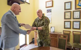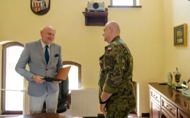 W dniu 29 lipca 2021 roku prezydent Michał Zaleski pożegnał odchodzącego ze stanowiska Komendanta Centrum Szkolenia Wojsk Obrony Terytorialnej w Toruniu płk Krzysztofa Leszczyńskiego. Fot. Lech KamińskiZ urzędu miasta na emeryturę