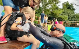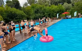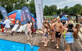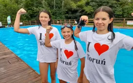 Spektakularne skoki do wody, kursy nurkowania, aquafitness, turnieje w badmintona, boule i siatkówkę plażową - to tylko część atrakcji, z których mogli skorzystać 23 lipca 2021 r. uczestnicy All Day Beach Party na basenach letnich przy Campingu Tramp przy ul. Kujawskiej. Fot. Stowarzyszenie GoSport!Żużel: Apator Toruń vs. Motor Lublin