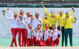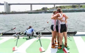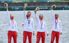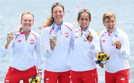 Polskie wioślarki zdobyły pierwszy medal dla Polski na igrzyskach olimpijskich w Tokio. Czwórka podwójna, w składzie Agnieszka Kobus-Zawojska, Maria Sajdak, Marta Wieliczko i Katarzyna Zillmann (AZS UMK Toruń), sięgnęła po srebro. To pierwszy medal dla Polski podczas igrzysk w Tokio. Fot. Paweł Skraba
