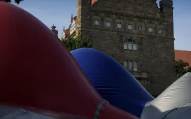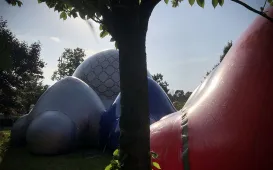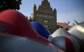 Od 16 lipca 2021 r. mieszkańcy Torunia i odwiedzający miasto turyści będą mogli wejść do wnętrza monumentalnej, pneumatycznej konstrukcji – Luminarium Albesila. Fot. Wojciech SzabelskiTrwa modernizacja torowisk