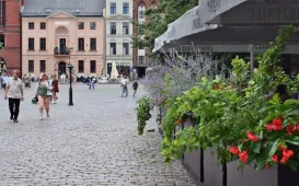 Toruńska starówka latem przyciąga nie tylko zabytkowymi uliczkami, ale też piękną i zadbaną zielenią. Zielenią się i kwitną ogródki letnie, wystawki przed sklepami, sezonowe parklety, donice i wieże kwiatowe. Fot. Małgorzata PtaszekSukcesy młodych wioślarzy