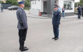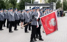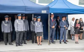 Uroczyste obchody Święta Policji odbyły się na terenie komisariatu nr 1 przy ul. Dziewulskiego w dniu 21 lipca 2021 r. Była to także okazja do wręczenia nominacji na wyższe stopnie. Swoje nagrody zasłużonym funkcjonariuszom przyznali prezydent miasta i starosta. Fot. Lech Kamiński