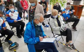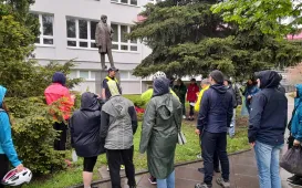 W strugach deszczu ponad 10 km pokonali uczestnicy historycznego rajdu rowerowego „Śladami Samuela Bogumiła Lindego”. 22 maja 2021 r. poznali sylwetkę twórcy Słownika języka polskiego. W tym roku obchodzimy 250. rocznicę urodzin wybitnego językoznawcy, który jest jedną z najznakomitszych postaci w historii Torunia. Fot. Stowarzyszenie Go SportPojemnik na nakrętki przy OSP Toruń