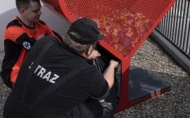 Ochotnicza Straż Pożarna Toruń-Bielawy okazała serce małej mieszkance Obrowa. Przed siedzibą Grupy Ratowniczej przy ul. Suwalskiej 55 stanął pojemnik na nakrętki, który ma pomóc w zbiórce na leczenie Lenki. Fot. Wojciech SzabelskiSąd Rejonowy w Toruniu na finiszu
