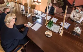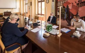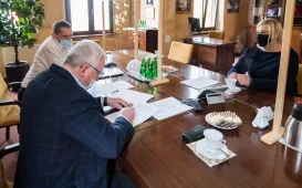 Umowa z wykonawcą sali gimnastycznej przy Szkole Podstawowej nr 14 - firmą Hosta Group Sp. z o.o. Sp. K. z Grębocina została podpisana w dniu 20 maja 2021 r. Gminę Miasta Toruń reprezentował zastępca prezydenta Zbigniew Fiderewicz, a wykonawcę - Małgorzata Stawska, prezes zarządu firmy Hosta Group. Fot. Lech KamińskiZielona otulina toruńskiej starówki