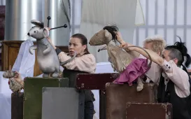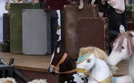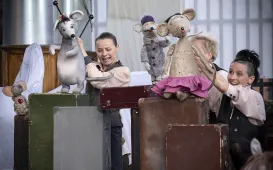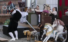 „Lalki śpiewają” - to tytuł przedstawienia, które miało premierę 15 maja 2021 r. na Scenie Szekspirowskiej Teatru Baj Pomorski. To dynamiczne widowisko, przepełnione muzyką, niebanalnym humorem, wartką akcją, w którym obok siebie stają lalki pochodzące z najrozmaitszych przedstawień Teatru „Baj Pomorski”, także tych, które dawno zeszły z afisza. Fot. Wojtek Szabelski
