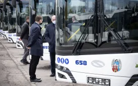 Nowoczesne, bezpieczne, bogato wyposażone, ułatwiające podróżowanie osobom z niepełnosprawnościami - do Torunia dotarło osiem nowych autobusów miejskich - zasilanych olejem napędowym solarisów. To kolejny krok w stronę wycofania z taboru najstarszych pojazdów, czyli wysłużonych jelczy. W planach są kolejne dostawy i zakupy nowego taboru, w tym autobusów elektrycznych. Fot. Wojciech SzabelskiPożegnanie dr. Andrzeja Przybysza