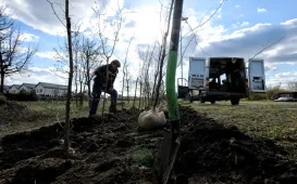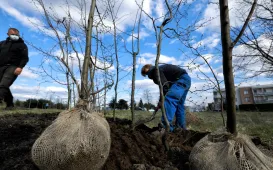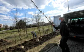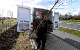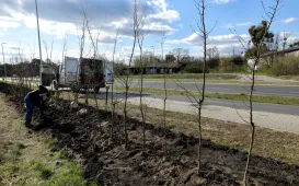Do końca kwietnia 2021 roku wzdłuż ulicy Polnej wyrośnie szpaler drzew – trwa nasadzanie 800 grabów pospolitych, które oddzielać będą osiedle od jezdni.. Fot. Sławomir KowalskiPodpisanie listu intencyjnego z PGE