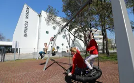 Toruń wzbogacił się o kolejną przestrzeń rekreacyjną dla mieszkańców. W otoczeniu nowo wybudowanego parku wodnego AQUA Toruń przy ul. Bażyńskich powstały ciekawe atrakcje dla miłośników rekreacji na świeżym powietrzu, m.in. tor dla rolkarzy, plac zabaw dla dzieci wraz z tyrolką, siłownia plenerowa, wybieg dla psów połączony z torem przeszkód. Fot. Sławomir KowalskiDrzewa na Polnej
