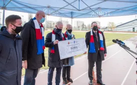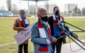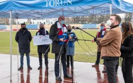 Pomorska Specjalna Strefa Ekonomiczna została sponsorem Klubu Sportowego Pomorzanin Toruń. Wsparcie w wysokości 50 000 zł zostanie przeznaczone na szkolenie dzieci i młodzieży w sekcjach piłkarskiej i hokeja na trawie. Spotkanie przedstawicieli klubu z PSSE i Prezydentem Torunia odbyło się w poniedziałek 29 marca 2021 r. na płycie Stadionu Miejskiego. Fot. Lech KamińskiZalążki wiosny w Toruniu