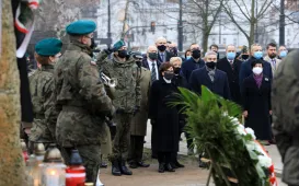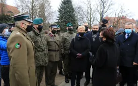 Toruń włączył się 1 marca 2021 r. w obchody Narodowego Dnia Pamięci "Żołnierzy Wyklętych". Gościem miejskich uroczystości była Marszałek Sejmu RP Elżbieta Witek, która na zaproszenie dowódcy jednostki st. chor. ZS Adama Ślusarskiego uczestniczyła w uroczystości złożenia przyrzeczenia przed 12 nowych adeptów Jednostki Strzeleckiej 1909 im. gen. bryg. Elżbiety Zawackiej w Toruniu. Fot. Sławomir KowalskiPożegnanie prof. Wieslawa Domasłowskiego