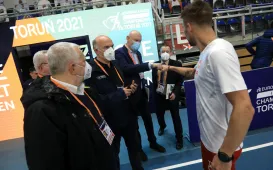 4 marca 2021 r. rozpoczynają się Halowe Mistrzostwa Europy w Lekkiej Atletyce. W przeddzień imprezy prezydent Torunia Michał Zaleski, zastępca prezydenta Zbigniew Fiderewicz sprawdzili przygotowanie Areny Toruń do wydarzenia. Fot. Sławomir KowalskiNarodowy Dzień Pamięci „Żołnierzy Wyklętych” 2021