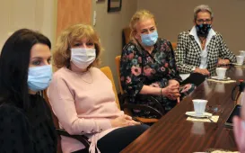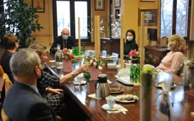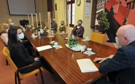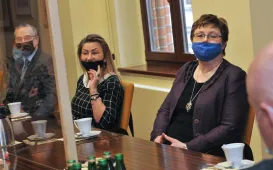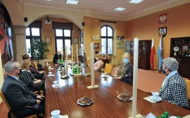 Prezydent Michał Zaleski spotkał się 4 marca 2021 r. z sześcioma długoletnimi pracownikami Urzędu Miasta Torunia, którzy w ostatnim czasie przeszli na emeryturę. Są to: Marianna Weronika Borończyk, Ewa Klein, Ewa Lewandowska, Mirosława Romaniszyn, Aleksandra Sass i Julian Skory. Fot. Małgorzata Litwin