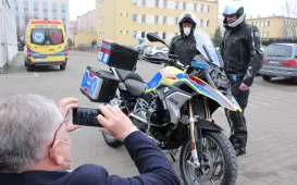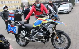 3 marca 2021 r. o Torunia dotarł długo wyczekiwany motoambulans. Pojazd został zakupiony z budżetu obywatelskiego Torunia na 2020 r. Jest nieduży, szybki, zwrotny i pomoże ratować torunian w sytuacjach zagrożenia. Projekt zgłoszony przez mieszkańca Torunia Michała Jarskiego w grupie projektów ogólnomiejskich otrzymał w 2019 roku 2381 głosów i został zakwalifikowany do realizacji. Fot. Adam ZakrzewskiWizytacja przed HMELA