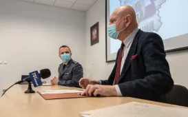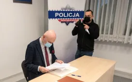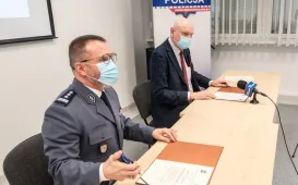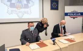 Miasto, jak co roku, przeznacza środki finansowe wspierające zakup nowych samochodów dla policji i zrealizowanie dodatkowych patroli. 26 lutego 2021 roku w siedzibie Komendy Miejskiej Policji przy ul. Grudziądzkiej 17 miało miejsce podpisanie przez prezydenta Michała Zaleskiego i komendanta KMP Macieja Lewandowskiego porozumienia dotyczącego wsparcia finansowego. Fot. Lech KamińskiW rocznice śmierci bł. ks. Frelichowskiego