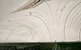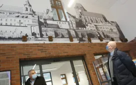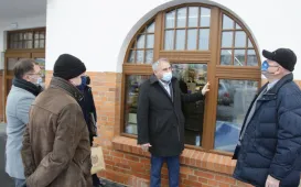 Dawna ujeżdżalnia koni przy ul. Kościuszki 55 zyskała nowy blask. 3 lutego 2021 r. prezydent Torunia Michał Zaleski, Miejski Konserwator Zabytków Emanuel Okoń oraz dyrektor CWB Łukasz Szarszewski sprawdzili, jak wygląda zabytkowy budynek po restauracji. Fot. Adam ZakrzewskiZadaszone boisko Przy Skarpie
