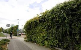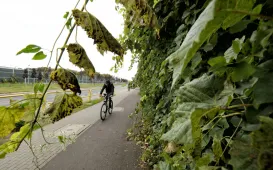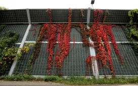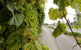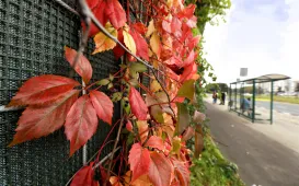 Pnącza na ekranach wzdłuż Trasy Prezydenta Władysława Raczkiewicza oraz rosnące tam drzewa przybrały jesienne kolory. Dzięki temu ruchliwa arteria w centrum miasta stała się miejscem pełnym uroku. Torunianie chętnie korzystają ze znajdujących się tam chodników i tras rowerowych. Fot. Sławomir Kowalski