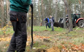 Trwa sadzenie 2000 szt. młodych drzew na terenie tzw. osiedla Jar. W dniu 16 listopada 2020 r. prace odbywały się w rejonie placów zabaw. Na osiedlu pojawiły się małe, bo zaledwie 30-60 centymetrowe sadzonki buków i grabów. Fot. Sławomir Kowalski