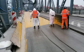 Na moście im. Józefa Piłsudskiego trwa montaż wsporników pod przyszły ciąg pieszo-rowerowy. Obecnie są one zakładane nad nurtem rzeki przy wykorzystaniu podwieszanych rusztowań. Wykonywane są też prace antykorozyjne, podczas których, w celu zapewnienia odpowiedniej temperatury w warunkach zimowych wykonawca używa nagrzewnic i osuszaczy. Fot. Miejski Zarząd DrógDzieci i młodzież sprzątają Toruń