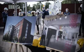 W dniu 5 października 2020 r. wbite zostały symboliczne łopaty rozpoczynające budowę mieszkań w ramach rządowego programu Mieszkanie Plus. Osiem czterokondygnacyjnych budynków stanie przy ul. Okólnej. Fot. Sławomir KowalskiZmarzlik mistrzem świata!
