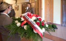 W gmachu Regionalnej Dyrekcji Lasów Państwowych w Toruniu przy ul. Mickiewicza umieszczona została tablica upamiętniająca leśników i drzewiarzy z Pomorza i Kujaw, ofiary Zbrodni Katyńskiej. Fot. Lech KamińskiWiszące rzeźby na starówce