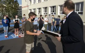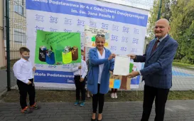 Zakończyła się 3. edycja konkursu Prezydenta Miasta Torunia "Zbieramy makulaturę". Z uwagi na pandemię nagrody do zwycięskich szkół i przedszkoli przywożą prezydent Michał Zaleski oraz jego zastępcy. W dniu 22 września do Szkoły Podstawowej nr 4 (zdj. 1-11), Branżowej Szkoły I Stopnia (zdj. 12-19) i do Przedszkola Miejskiego nr 3 (zdj. 20-28) pojechał prezydent Michał Zaleski. Fot. Sławomir Kowalski