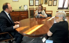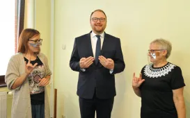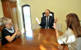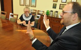 Co roku w ostatnią niedziele września przypada Międzynarodowy Dzień Głuchych. To okazja do przypomnienia o potrzebach i problemach osób dotkniętych utratą słuchu. Z tej okazji 24 września 2020 r. w Urzędzie Miasta Torunia gościły przedstawicielki toruńskiego środowiska osób głuchych: Grażyna Skrzeszewska i tłumaczka migowa Sylwia Fedus. Spotkał się z nimi zastępca prezydenta Torunia Paweł Gulewski. Fot. Małgorzata LitwinNowe drzewa mają się dobrze