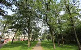 W drugim kwartale 2021 roku ma być gotowy imponujący gmach Sądu Rejonowego w Toruniu. We wrześniu 2020 roku stan zaawansowania prac wynosi ok. 80 procent. Fot. Sławomir KowalskiPark za pawilonem Maciej
