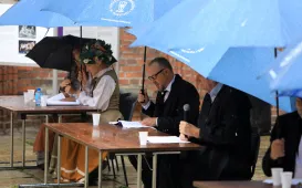 W Toruniu upamiętnieni zostali Ukraińscy Bohaterzy, zamordowani przez bandy OUN-UPA za ratowanie Polaków podczas rzezi na Kresach Wschodnich w latach 1943-1945. Postument z tablicą przybliżającą historię tragicznych wydarzeń na Wołyniu i w Małopolsce Wschodniej został odsłonięty 5 września 2020 r. w Parku Pamięci Narodowej na terenie Sanktuarium NMP Gwiazdy Nowej Ewangelizacji i św. Jana Pawła II w Toruniu. Wydarzenie było elementem odbywającego się tego dnia XII Dziękczynienia w Rodzinie. Fot. Adam ZakrzewskiNarodowe Czytanie "Balladyny"