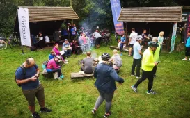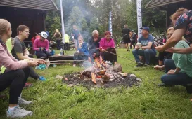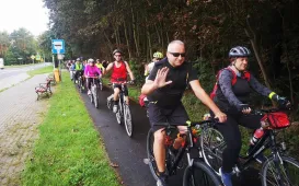 W ramach 4. edycji rajdu "Toruń na Rowery", który odbył się 5 września 2020 r., uczestnicy pokonali 11-kilometrową trasę prowadzącą z Torunia do Olka, gdzie na terenie nadleśnictwa zrobiono ognisko z kiełbaskami. Fot. Stowarzyszenie GoSportIV Rodzinny Festyn na Jarze