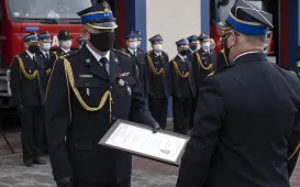 W Komendzie Miejskiej PSP w Toruniu 27 sierpnia 2020 r. odbyło się uroczyste przejęcie obowiązków przez nowego komendanta jednostki bryg. Sławomira Reszkowskiego. Nowy komendant zastąpił na tym stanowisku st. bryg. Roberta Wiśniewskiego, który pełnił tę funkcję od maja 2019 roku, a od 3 sierpnia 2020 r. awansował na stanowisko zastępcy komendanta wojewódzkiego PSP. Fot. Wojciech Szabelski