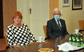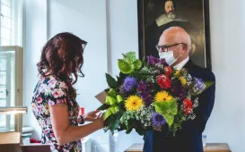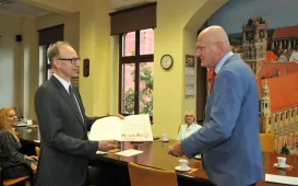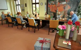 Na emeryturę odchodzi kolejnych czworo pracowników toruńskiego samorządu: Ewa Trędewicz, Maria Seklecka, Andrzej Kobyłecki i Andrzej Siewiński. 28 sierpnia 2020 r. pożegnał ich prezydent Torunia Michał Zaleski, wręczając im listy gratulacyjne, kwiaty i pamiątkowe upominki. Fot. Małgorzata LitwinPrzedłużone umowy dla dyrektorów