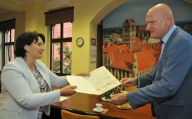 W związku z pandemią koronawirusa Prezydent Miasta Torunia przedłużył o rok umowy dyrektorom 8 toruńskich placówek oświatowych. Wręczenie decyzji w tej sprawie odbyło się 28 sierpnia 2020 r. w Urzędzie Miasta Torunia. Fot. Małgorzata LitwinKolejne prace na moście