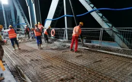 Postępują prace przy rozbudowie mostu drogowego im. J. Piłsudskiego - w nocy z wtorku (25.08) na środę (26.08) wylany został beton na ósmym przęśle. Fot. MZDNowy komendant PSP w Toruniu