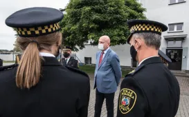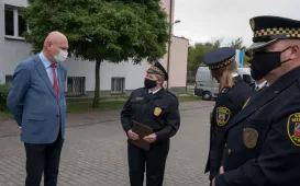 29 sierpnia 2020 r. obchodzimy w Polsce Dzień Straży Gminnej. W przeddzień święta toruńską jednostkę odwiedził i wręczył wyróżnienia prezydent Torunia Michał Zelski. Fot. Lech KamińskiZ samorządu na emeryturę