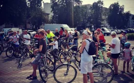 17 sierpnia 2020 r. pod pomnikiem Mikołaja Kopernika odbył się wiec poparcia dla protestów społecznych na Białorusi. W wydarzeniu wziął udział zastępca prezydenta Torunia Zbigniew Fiderewicz. fot. Wojciech SzabelskiRajd rowerowy z historią w tle