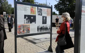14 sierpnia 2020 r., przed Urzędem Marszałkowskim w Toruniu, została odsłonięta tablica "Pamięci tych, którym winniśmy dług wdzięczności za wolność naszą i Europy” poświęcona bohaterom Bitwy Warszawskiej. fot. Sławomir KowalskiWystawa "Bitwa Warszawska. Stulecie zwycięstwa"