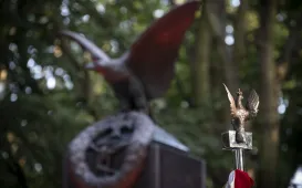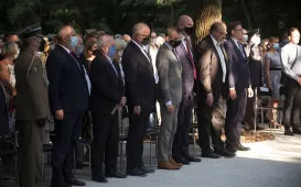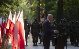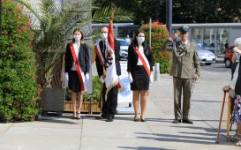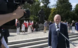 Symboliczne złożenie kwiatów pod pomnikiem marszałka Józefa Piłsudskiego w Toruniu przez wspólną delegację kombatantów, samorządowców, przedstawicieli województwa i toruńskich instytucji uczciło 15 sierpnia 2020 r. 100. rocznicę Bitwy Warszawskiej. Fot. Wojtek SzabelskiŚwieto Wojska Polskiego 2020. Msza za Ojczyznę