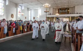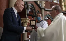 Swoje święto obchodziło 15 sierpnia 2020 r. toruńskie Kolegium Jagiellońskie. Z tej w murach uczelni gościł Tomaś Petříček, Minister Spraw Zagranicznych Republiki Czeskiej, który został uhonorowany przez szkołę Nagrodą Jagiellońską. Dyplomy i nagrody odebrali też tegoroczni absolwenci placówki. Fot. Lech Kamiński40 lat Parafii Świętego Maksymiliana Kolbego w Toruniu