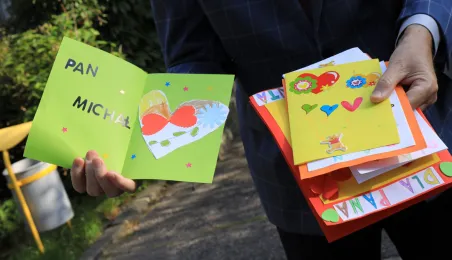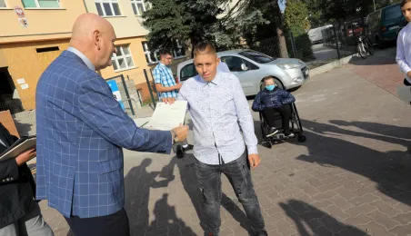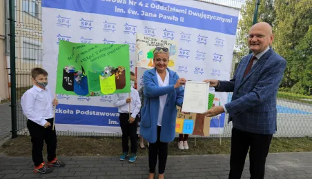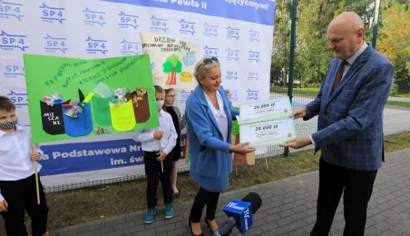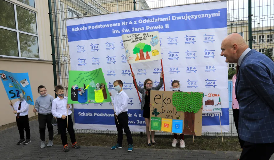Zakończyła się 3. edycja konkursu Prezydenta Miasta Torunia "Zbieramy makulaturę". Z uwagi na pandemię nagrody do zwycięskich szkół i przedszkoli przywożą prezydent Michał Zaleski oraz jego zastępcy. W dniu 22 września do Szkoły Podstawowej nr 4 (zdj. 1-11), Branżowej Szkoły I Stopnia (zdj. 12-19) i do Przedszkola Miejskiego nr 3 (zdj. 20-28) pojechał prezydent Michał Zaleski. Fot. Sławomir Kowalski