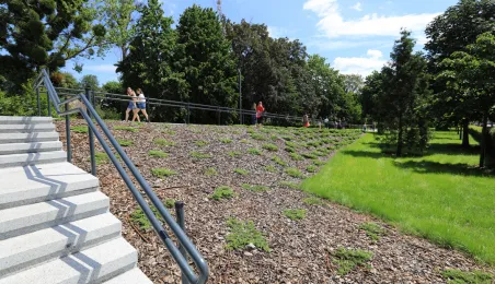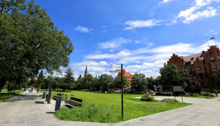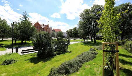 Mieszkańcy Torunia mogą już w pełni ocenić efekty nowego zagospodarowania skwerów zieleni przy Muzeum Etnograficznym i CKK Jordanki. Projekt "Zielona Brama gotyckiej starówki - zagospodarowanie i odnowa terenów zieleni w Toruniu" o wartości blisko 7 mln zł został zrealizowany przez miasto z ponad 3,5-milionowym dofinansowaniem unijnym w ramach Programu Operacyjnego Infrastruktura i Środowisko. Wykonawcą prac było Przedsiębiorstwo PHU Janusz Ostrowicki z Jasienia. Fot. Sławomir Kowalski