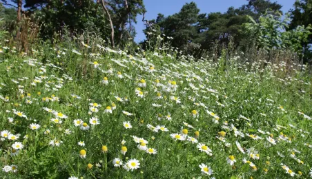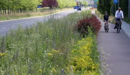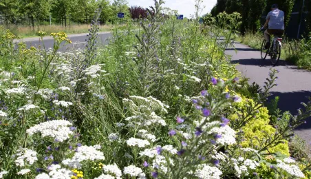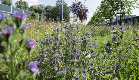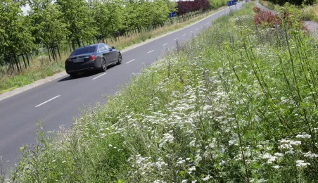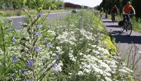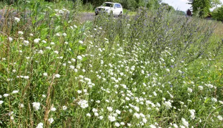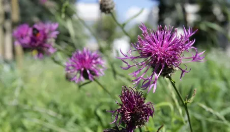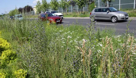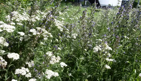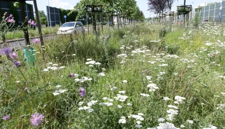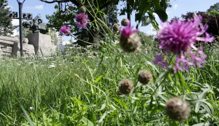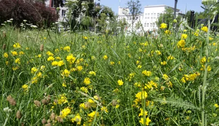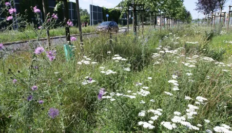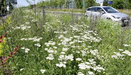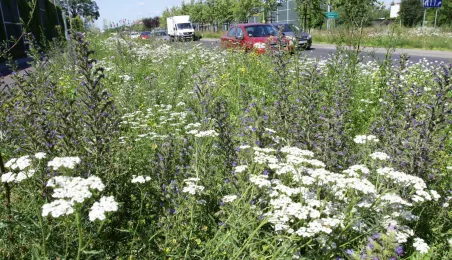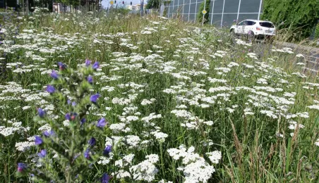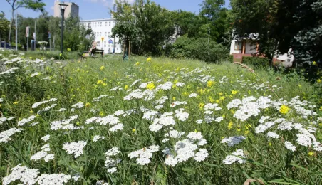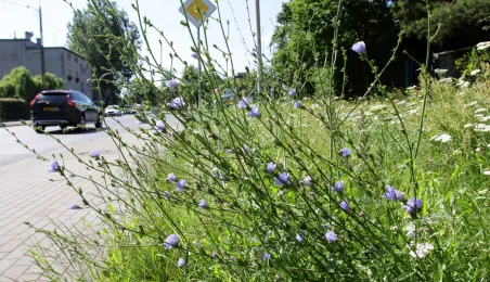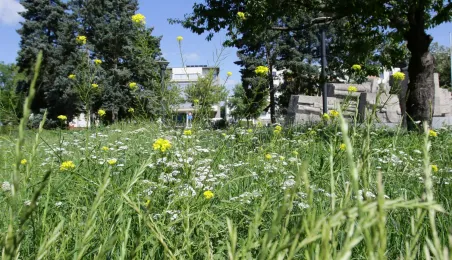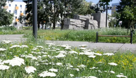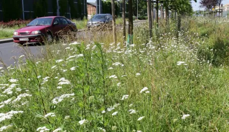 Latem 2020 w Toruniu można napotkać wiele miejsc porośniętych bujną roślinnościa łąkową. Niektóre powstały naturalnie - w wyniku ograniczenia koszenia dla przeciwdziałania skutkom suszy, inne zostały założone specjalnie - jako alternatywa dla tradycyjnych trawników i kwietników, sprzyjająca bytowaniu owadów. Na zdjęciach łąki kwietne w rejonie Rudelki, pomnika Artylerzysty i przy Trasie Władysława Raczkiewicza. Fot. Adam Zakrzewski