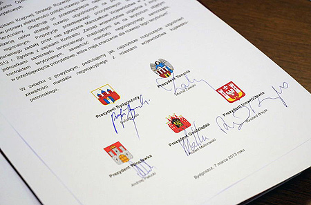 W spotkaniu poświęconym nowej perspektywie finansowej, związanej z funduszami unijnymi w latach 2014-2020, wzięli udział prezydenci Bydgoszczy, Torunia, Grudziądza, Inowrocławia i Włocławka. W uzgodnionym i podpisanym przez nich stanowisku wyrazili poparcie dla polityki, która zmierzać będzie do zwiększenia udziału dużych miast w podziale środków unijnych w nowym okresie programowania.