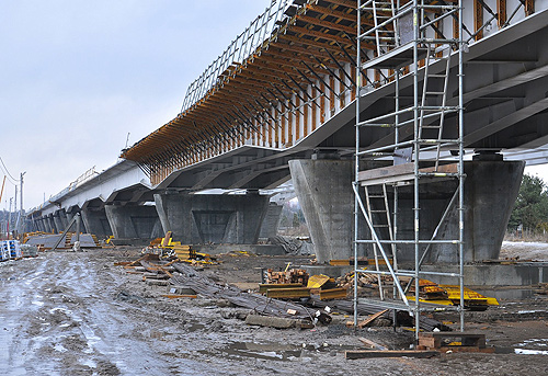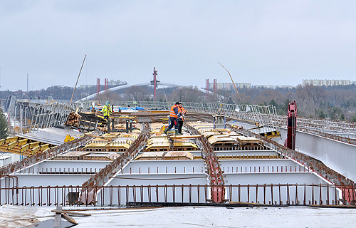 W kolejnych tygodniach w obrębie Estakady Żółkiewskiego prowadzone będą prace przygotowawcze do betonowania ustroju niosącego oraz zakończenie wznoszenia pylonu. Cały czas trwają także roboty na prawo i lewobrzeżnych estakadach. W minionym tygodniu montowano szalunki oraz elementy płyt pomostowych wraz ze zbrojeniem. Demontowane są także urządzenia pomocnicze w obrębie płyt pomostowych, które udało się już zabetonować.
