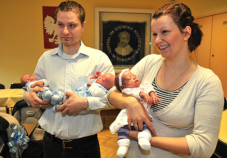 Według medycznych statystyk bliźnięta zdarzają się raz na 80 porodów, a trojaczki raz na 6400. W Toruniu w 2005 roku urodzili się Julia, Oliwier i Oskar Malinowscy oraz Wiktoria, Agata i Dawid Lewandowscy, w 2009: Maja, Marcin i Michał Obremscy, w 2010: Ola, Lena i Fabian Faleńscy, a w 2011: Oliwia, Martyna i Wiktoria, dzieci Andżeliki Mandzińskiej. Teraz do grona toruńskich trojaczków dołączyły dzieci państwa Gawlikowskich.