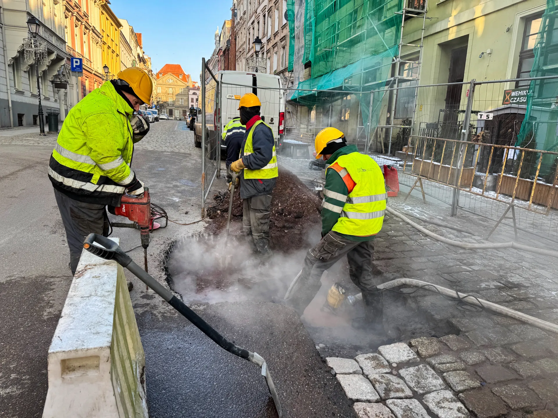 Niekorzystne warunki atmosferyczne - opady oraz niskie temperatury - doprowadziły do dalszej degradacji miejsca uszkodzenia, aż do powstania nieszczelności. Naprawa awarii wymaga spuszczenia wody z połowy sieci ciepłowniczej występującej na Starówce. Dzięki przebudowie sieci ciepłowniczej przeprowadzonej w 2024 roku oraz wykonaniu pierścienia zasilającego Starówkę, nie było konieczności wyłączenia dostaw ciepła na większym obszarze Zespołu Staromiejskiego.