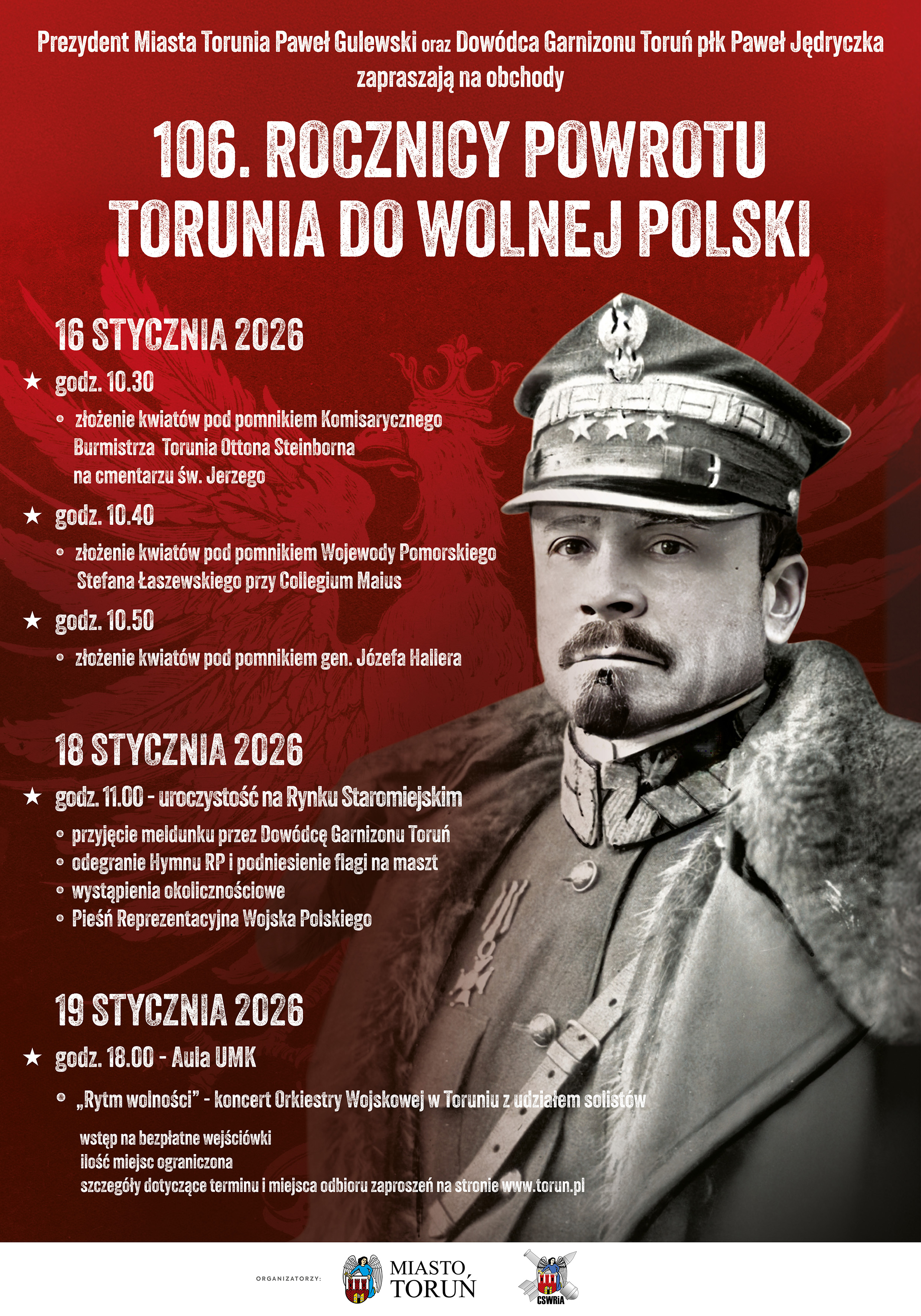 PROGRAM UROCZYSTOŚCI 106. ROCZNICY POWROTU TORUNIA DO WOLNEJ POLSKI