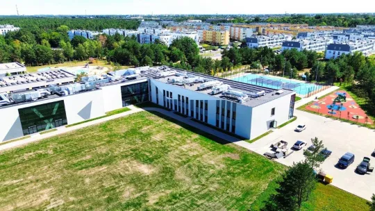 W budynku znajduje się 21 sal lekcyjnych, w tym 4 sale tematyczne, biblioteka, kuchnia ze stołówką, zaplecze administracyjne oraz szatnie - kompletna, bezpieczna przestrzeń do nauki, zabawy i rozwoju. Na uczniów czeka także zagospodarowany teren wokół szkoły, gdzie znajdują się plac zabaw, boisko wielofunkcyjne oraz elementy małej architektury. Powstał także parking oraz zadaszony ciąg stojaków rowerowych.