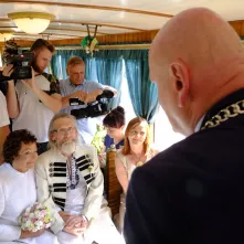 - Żeby nie zwariować, trzeba robić w życiu coś zwariowanego. W Norwegii widziałem operę w tramwaju, więc pomyśleliśmy: „dlaczego nie ślub”? A przy okazji chcieliśmy pokazać naszym gościom, jaki piękny jest Toruń – mówi Stanisław.