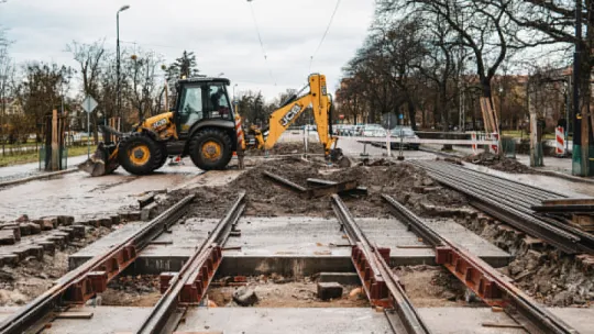 Aktualnie na placu budowy wzdłuż al. Św. Jana Pawła II trwają prace związane z budową płyty podtorowej. Układane są i spawane szyny, które w najbliższym czasie będą kotwione do płyty podtorowej, a następnie będzie wykonywany podlew pod stopką szyny. Trwają również prace drogowe związane z wykonywaniem wysp z krawężnika, a w przyszłym tygodniu rozpoczną się prace związane z profilowaniem podbudowy z kruszywa łamanego stabilizowanego mechanicznie pod prace bitumiczne tj. pod wykonanie podbudowy bitumicznej. Potem wykonywane będą prace związane z płytą podtorową w kierunku pl. Niepodległości.